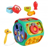 Edukačná interaktívna kocka je ideálnou hračkou pre malé deti, ktoré sa učia spoznávať svet hrou. Ponúka osem rôznych funkcií, ktoré rozvíjajú zmysly, pohybové, kognitívne a emocionálne zručnosti dieťaťa.