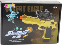 Štýlové darčekové balenie s dynamickou grafikou zvýrazňuje možnosti pištole: streľbu gélovými guľôčkami aj mäkkými šípkami – skvelý tip na darček.