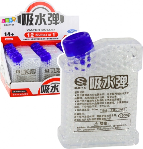 Priehľadný zásobník ukrýva 1500 hotových hydrogélových guľôčok s priemerom 6–7 mm, ktoré sú pripravené na okamžité použitie bez namáčania. Guľôčky sú bezpečné, netoxické a biologicky odbúrateľné, po zásahu sa rozpadnú a nezanechávajú neporiadok. Vhodné pre väčšinu pištolí na vodné gélové guľôčky, ideálne na domácu aj vonkajšiu zábavu.