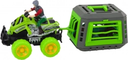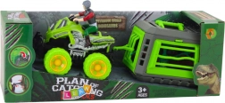 Súčasťou setu je nielen robustná štvorkolka s pripojiteľnou klietkou, ale aj figúrka vodiča v ochrannej helme a figúrka dinosaura, ktoré spoločne tvoria ucelenú scénku pripravenú na hranie hneď po vybalení.