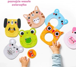 Moje puzzle s dierkou – Zvieratká sú ideálnou voľbou pre malých začiatočníkov. Vďaka veľkým dielikom a šikovným kolieskam, ktoré možno ľubovoľne prehadzovať, deti trénujú zručnosť prštekov, koordináciu oko–ruka aj logické myslenie. Zvieratká lákajú k pomenúvaniu farieb, tvarov a k objavovaniu rozdielov medzi veľkým a malým.