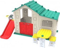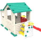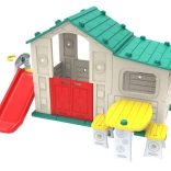 Domček obsahuje bezpečnú dvojvrstvovú šmykľavku so širokými a odolnými schodíkmi, ktorá je ideálna pre detskú zábavu.