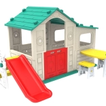 - Priestor pre kreatívne hry: Domček ponúka rôznorodé možnosti hry vďaka integrovanému basketbalovému košu, stolíku a bezpečnej šmykľavke.