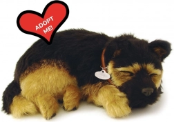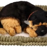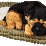 Doprajte deťom alebo sebe upokojujúceho parťáka: toto šteniatko nemeckého ovčiaka jemne „dýcha“ a spokojne oddychuje na svojom mäkkom pelechu. Realistické detaily, kontrastná čierno-hnedá srsť a nežná spiaca poloha z neho robia ideálny darček pre milovníkov psov.