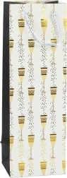 Táto darčeková taška na fľašu kombinuje reprezentatívny vzhľad a funkčnosť. Efektná potlač pohárov a bubliniek so zlatým akcentom dodá každému daru slávnostný tón – hodí sa na svadby, narodeniny, výročia, Silvester aj firemné akcie. Univerzálny rozmer bezpečne pojme väčšinu štandardných fliaš.