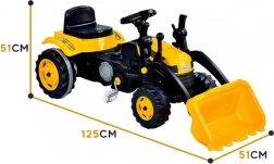 Žltý šliapací traktor s predným nakladačom je skvelou hračkou pre deti, ktoré chcú začať objavovať svet šliapacích vozidiel. Vďaka funkcii nakladača si môžu deti naložiť svoje obľúbené hračky a vziať ich na vzrušujúce dobrodružstvo.