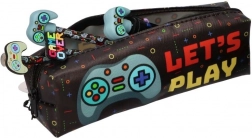 Štýlové školské puzdro pre hráčov s motívom herného ovládača a nápisom LET’S PLAY. Ľahký a odolný materiál, jedna prehľadná komora a zips po celej dĺžke udržia vaše písacie potreby v bezpečí a poriadku. Ideálne do školy, na krúžky aj na cesty.