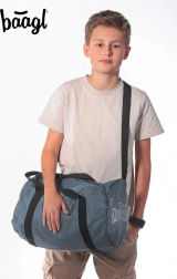 Športová taška Hoop Dust Blue: Ľahká a sklápateľná s nosnosťou 5 kg a objemom 22 l. Vybavená nastaviteľným popruhom a integrovanou kapsou, do ktorej sa taška ľahko zloží. Vyrobená z recyklovaného materiálu a prispôsobiteľná na cestovanie.