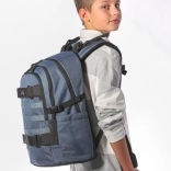 Školský batoh Skate Dust Blue: Ľahký model s hmotnosťou pod 900 g, nastaviteľnými popruhmi na skateboard a anatomicky tvarovanými zadovými výstužami. Batoh je vybavený tromi samostatnými komorami, polstrovanou kapsou na notebook či tablet do veľkosti 15 palcov, reflexnými prvkami a spoľahlivými zipsami značky YKK.