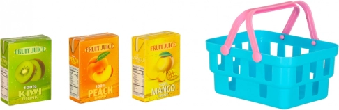 - Kompletný set pre role-play: košík, ovocie, džúsy, fľaštičky, pohárik na shake, podložka.