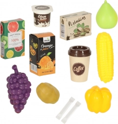Obsahuje 36 častí, vrátane ovocia, zeleniny, jogurtov, nápojov a ďalších položiek, ako aj herný telefón a farebné nálepky. Táto bezpečná a odolná hračka je vyrobená s ohľadom na bezpečnosť detí, bez ostrých hrán a je ideálna pre kreatívne scenáre a realistické skúsenosti.