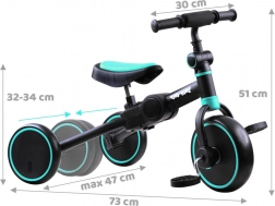Univerzálne detské kolo 3v1 Tiny Bike, ktoré rastie s dieťaťom: ľahko ho premeníte na trojkolku, odrážadlo alebo balančné kolo bez náradia. Ponúka ľahký a odolný rám, široké kolesá pre stabilitu, nastaviteľné sedlo a pohodlné, nešmykľavé rukoväte. Skvelé pre rozvoj rovnováhy, koordinácie a istoty pri jazde.