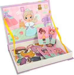 Objavte čaro magnetických puzzle v praktickej knihe s vekom, ktoré slúži ako magnetická tabuľa. Stačí otvoriť a začať skladať – deti obliekajú postavičku podľa kariet s predlohami alebo vlastnej fantázie, trénujú kombinovanie a estetické cítenie.