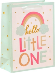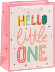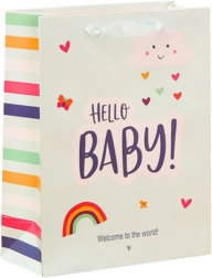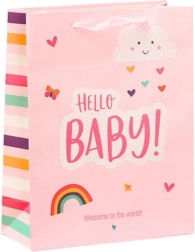 Táto darčeková taška pre deti s pastelovým dizajnom je ideálna na darovanie darčekov pri príležitosti narodenia dieťaťa, baby shower alebo prvých narodenín. Ozdobená roztomilými motívmi s nápismi „Hello Baby“ a „Hello Little One“, táto taška prináša radosť a teplo do každého slávnostného dňa.