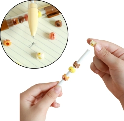 Guľôčkové pero s figúrkami kapibary je nielen praktický nástroj na každodenné písanie, ale tiež roztomilý doplnok, ktorý priťahuje pozornosť a zlepšuje náladu. Figúrka kapibary je umiestnená v priehľadnej komore pera a možno ju posúvať, otáčať alebo meniť ich poradie podľa ľubovôle. Mechanizmus vysúvania náplne je na kliknutie, čo robí pero ľahko ovládateľným aj pre najmladších používateľov.