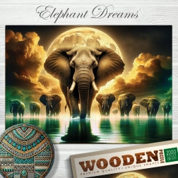 Ponorte sa do zábavy s WOODEN CITY Drevenými puzzle Slonie sny. Každý dielik je nielen unikátne tvarovaný, ale mnohé z nich sú v tvare zvierat, čo zvyšuje celkový estetický dojem. Výsledkom je obrázok, ktorý postaví vašu trpezlivosť a zručnosti na skúšku.