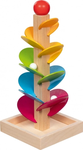 Drevená guličková dráha s 2 guličkami, ktorá ponúka zábavu pre deti a zároveň rozvíja jemnú motoriku.