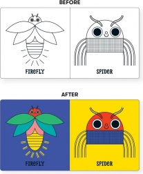 Kúzelný vodný efekt premení ilustrácie z čiernobielych na farebné a urobí z každého kúpan ia radosť plnú podívanú.
