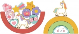 Objavte kúzlo hry, ktorá kombinuje vkladačkové puzzle a balančnú hru v jednom. Skladá sa zo základne a 14 vkladačkových dielov. Nechajte deti skúšať ich trpezlivosť a tvorivosť tým, že skladajú farebné diely na seba.