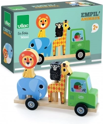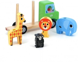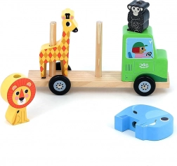 Táto unikátna drevená hračka vo forme nasadzovacieho auta kombinuje pohyblivé dopravné prostriedky a roztomilé zvieratká zo safari. Vaše dieťa si užije veľa zábavy pri rozpoznávaní zvierat a tvorení príbehov. Hračka je ideálna pre rozvoj jemnej motoriky, obratnosti a koordinácie ruka-oko.