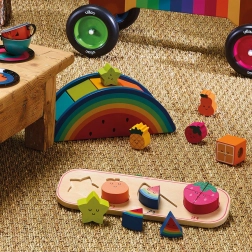 Objavte krásu a funkčnosť tejto drevenej vkladačky podľa návrhu Andy Westface. Každé dieťa bude nadšené farbami a tvarmi, ktoré táto hračka ponúka. Perfektné pre rozvoj sústredenia, obratnosti a koordinácie ruka-oko.