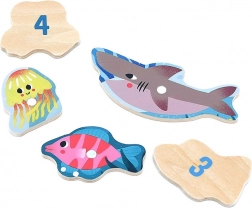 Magnetická hra Rybárčenie v Oceáne vás vezme na zábavnú misiu chytania morských živočíchov. Získavajte body za každého chyteného tvora a súťažte, kto nazbiera viac bodov. Táto hra skvele rozvíja kognitívne schopnosti, koordináciu ruka-oko a jemnú motoriku.