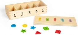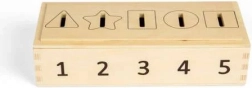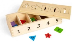 Použite túto inovatívnu krabičku na precvičovanie rozpoznávania čísel, farieb a tvarov. Deti môžu vhadzovať žetóny rôznych farieb a tvarov označené číslami od 1 do 5 do zodpovedajúcich otvorov. Vďaka obojstrannému odnímateľnému veku je manipulácia jednoduchá a zábavná.