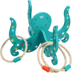 Trénujte koordináciu a presnosť s touto hravou drevenou hrou na hádzanie krúžkov v tvare chobotnice, ktorá zabaví celú rodinu a ponúkne zábavu na hodiny.