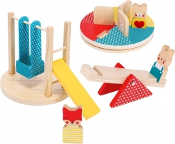 Pripravte svoje deti na nezabudnuteľné chvíle na ihrisku s touto drevenou sadou. Obsahuje tri zvieracie postavičky, ktoré ožívajú na ihrisku plnom fantázie: