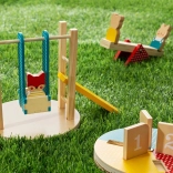 Užite si hru na ihrisku so zvedavými zvieracími kamarátmi, medzi ktorými nechýba líška, medveď a zajko. Táto drevená sada je ideálna pre rozvoj jemnej motoriky a emocionálneho vnímania detí. Súčasťou sady sú atrakcie ako kolotoč, hojdačka a šmykľavka, ktoré deťom zabezpečia hodiny zábavy.