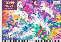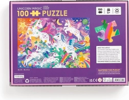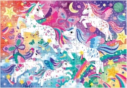 S touto 100-dielnou skladačkou sa ponoríte do snovej krajiny, kde jednorožce hrajú medzi blikajúcimi hviezdami, trblietajúcimi sa diamantmi a ďalšími vesmírnymi úkazmi. Objavte tajomstvá oblohy ozdobenej hviezdnymi jednorožcami! Puzzle Čarovné jednorožce je vyrobené z recyklovaných materiálov a spĺňa bezpečnostné normy CPSIA, ASTM, CE.