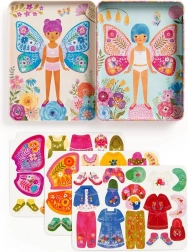 Sada obsahuje dve ilustrované scény s motýlími slečnami, ktoré čakajú, až ich oblečiete. Vyskúšajte viac ako 40 magnetov s oblečením a motýlími krídlami na troch kartách. Každý kúsok je možné kombinovať podľa vašej vlastnej predstavivosti.