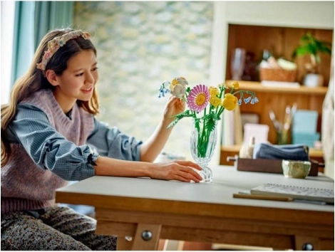 Po zostavení získate štýlovú dekoráciu z kociek do obývačky, spálne či kancelárie. Sadu možno kombinovať s ďalšími setmi LEGO Botanicals, takže si postupne vytvoríte vlastné kvetinové aranžmány bez polievania a opadávania lístkov.