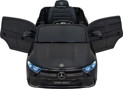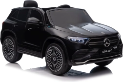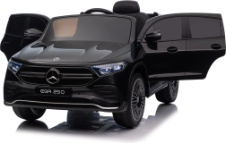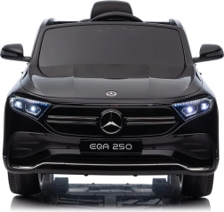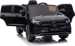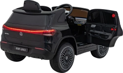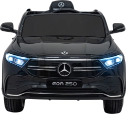 Štýlové detské elektrické autíčko MERCEDES-BENZ EQA 250 v elegantnej čiernej farbe ponúkne 4×35 W motory, výkonný akumulátor 12 V 10 Ah, penové kolesá EVA, otváracie dvere a LED svetlá. Rodičia ocenia diaľkové ovládanie 2,4 GHz s tlačidlom núdzového zastavenia, deti zase komfortné sedadlo z eko kože, bezpečnostný pás a bohatý audio panel s Bluetooth/USB/AUX/MP3.