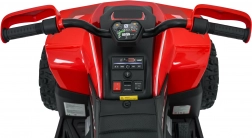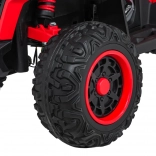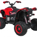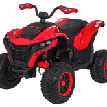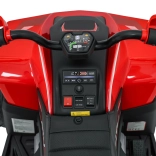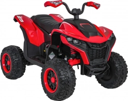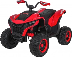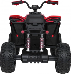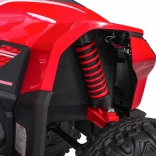Robustná štvorkolka pre deti zvládne aj nerovný terén vďaka veľkým penovým EVA kolesám a dvojitým zadným tlmičom s reguláciou. Vysoká svetlá výška 21 cm a nosnosť až 50 kg zaručia stabilitu a dlhú životnosť. Ergonomické sedlo (38 × 19 cm) z eko kože a bezpečnostné pásy pridávajú pohodlie aj istotu pri jazde.