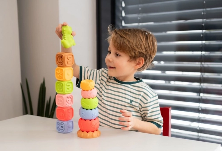 Táto montessori stavebnica a senzorická pyramída je perfektnou voľbou pre rodičov, ktorí chcú zapojiť svoje deti do interaktívnej a senzorickej hry. Vďaka nemäkavému a bezpečnému materiálu sú tieto hračky ideálne nielen na hranie, ale aj na kúpanie, pretože nemajú žiadne otvory, čo zabraňuje hromadeniu vody vo vnútri. Medzi ďalšie výhody patria: