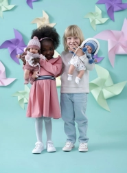 Hlava a končatiny sú vyrobené z kvalitného mäkčeného vinylu, čo dodáva realistický vzhľad. Po vytiahnutí cumlíka z úst bábika povie „mama“, „papa“ a vydáva zvuk plačúceho dieťaťa, ktorý možno utíšiť magnetickým cumlíkom.