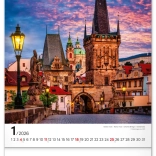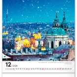 Nástenný kalendár Praha 2026 prináša nádherné pohľady na historicky a kultúrne bohaté mesto Praha, zvýraznené dvanástimi úchvatnými fotografiami. Súčasťou kalendára je prehľadné kalendárium, ktoré neruší estetiku snímok.