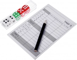 Táto univerzálna súprava prináša všetko, čo potrebujete na hru Yams aj ďalšie náhodné a spoločenské hry. Kocky s dobre čitateľnými bodkami, priložený blok na zapisovanie výsledkov a ceruzka vám umožnia hrať kedykoľvek a kdekoľvek. Vďaka pevnému puzdru máte príslušenstvo vždy pokope.