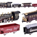 Užite si realistickú železničnú zábavu: Lokomotíva sa pohybuje vpred a vzad, vydáva realistické zvuky ako klapanie koliesok, pískanie a zvonenie. Po naplnení nádrže sa z komína valí para, ako u skutočných parných lokomotív. Predné svetlo svieti počas jazdy a riadenie je zabezpečené diaľkovým ovládačom s intuitívnymi tlačidlami.