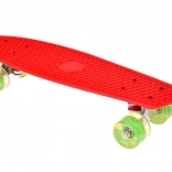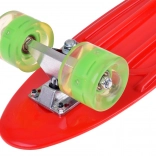 Kolieska z trvanlivého materiálu s gumovým poťahom zabezpečujú skvelú priľnavosť a tlmenie vibrácií. Vstavané LED diódy, ktoré svietia počas jazdy, dodávajú skateboardu jedinečný vzhľad a zvyšujú viditeľnosť používateľa – bez potreby batérií! Diódy sú poháňané magnetickou energiou generovanou otáčaním koliesok.