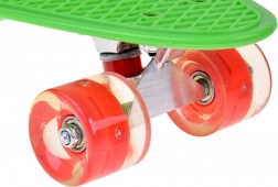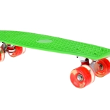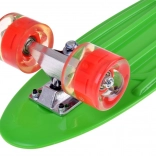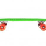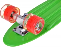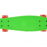 Kolieska skateboardu sú vyrobené z odolného materiálu pokrytého špeciálnou gumou, čo poskytuje vynikajúcu priľnavosť a tlmenie vibrácií. Ďalšou atrakciou sú integrované LED diódy, ktoré svietia počas jazdy a dodávajú skateboardu výnimočný vzhľad, navyše zvyšujú viditeľnosť užívateľa - bez potreby batérií! Diódy sú napájané magnetickou energiou generovanou pri otáčaní kolies.