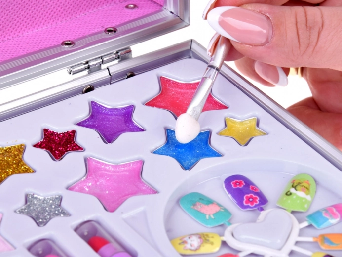 Obsahuje laky na nechty, rúže, tiene, aplikátory a viac – všetko potrebné pre krásne líčenie.