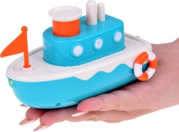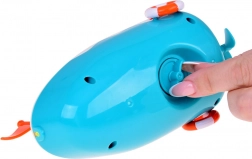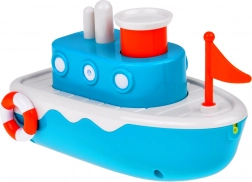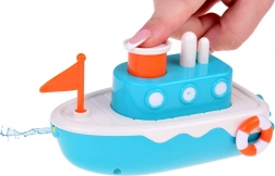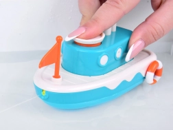 Táto detská loď ponúka interaktívny zážitok s tlačidlom, ktoré vypúšťa vodu pre väčšiu zábavu počas kúpania.