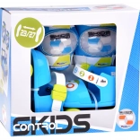 Súprava obsahuje chrániče lakťov a kolien, ktoré poskytujú potrebnú ochranu pri pádoch a sú vyrobené z mäkkých, ale odolných materiálov.