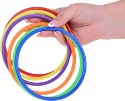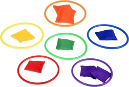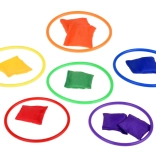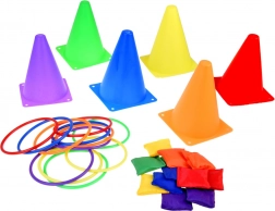 Tento herný set je ideálny pre deti, ktoré rady trávia čas aktívne. Obsahuje šesť farebných kužeľov, dvanásť textilných vrecúšok a dvanásť plastových obručí, ktoré umožňujú rôzne druhy hier. Deti si môžu zlepšiť svoju koordináciu a presnosť pri hádzaní a cielkovaní.