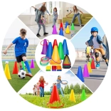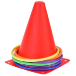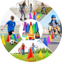 Tento set obsahuje kužele a obruče v živých farbách, ktoré prilákajú pozornosť a zabezpečia zábavu pri hraní. Sú vynikajúce na označenie ihriska alebo stanovíšť.