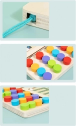 Drevená dosková hra má rôzne vzory pre ľahké učenie farieb a koordinácie. Podporuje kreativitu a koncentráciu detí.