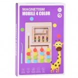 Hra obsahuje farebné guľôčky, ktoré deti presúvajú pomocou magnetickej tyčinky, čo podporuje jemnú motoriku a koordináciu.