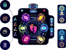 Táto podložka je navrhnutá pre zábavu ako pre deti, tak i pre dospelých, ktorí chcú ukázať svoje tanečné zručnosti. Atraktívny dizajn v tmavých farbách zaujme každého. Je vhodná na tréning koordinácie, reflexov a fyzickej kondície.
